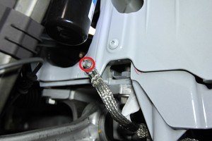 安装将前驱动单元高压线束固定到高压电池的螺栓。