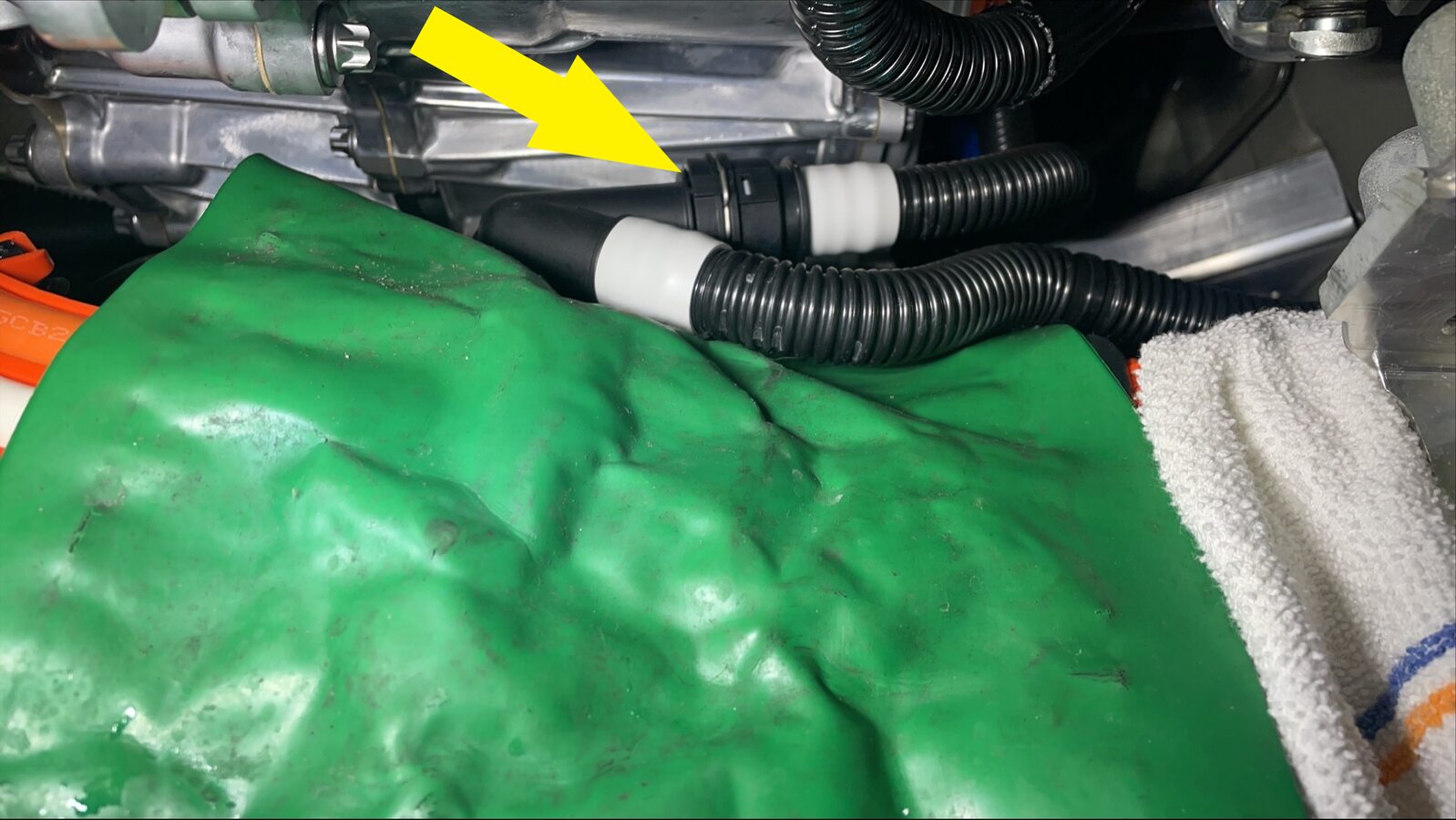 - 松开夹子,断开功率转换系统冷却液供给软管与高压电池的连接,然后立即塞上接头。