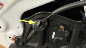 - 小心沿车窗校准器移动左侧前车门闩锁线路总成后
