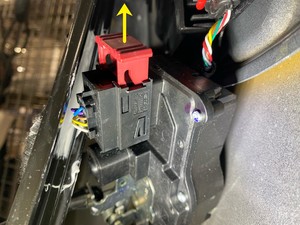 - 连接左侧前车门总成电气连接器,然后接合连接器锁。
