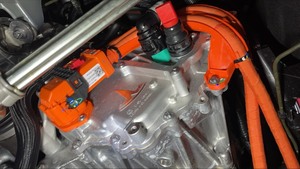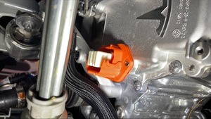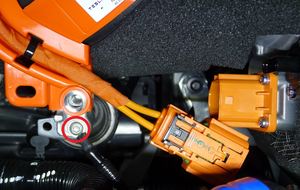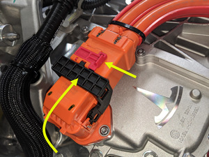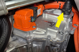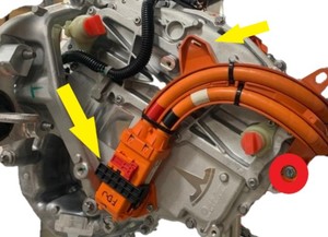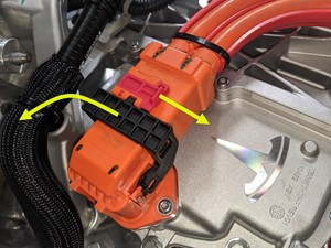 - 从高压连接器上拆下前驱动单元泄漏测试适配器