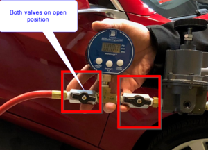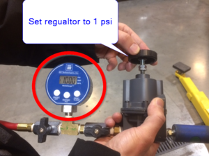 注当压力达到 1 psi 且稳定时,关闭阀门