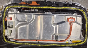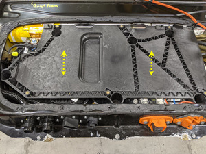分离高压电池前检修板密封胶,以便进行拆卸。
