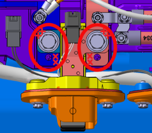 注注意请勿夹住周边线束和连接器;转动位于直流母排下的高压控制器,转动时需抬高控制器,勿使其与螺柱接触,然后将控制器向下放入安装位置。