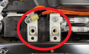 注2 个高压接头;确认使用前仪表已归零;电阻值应小于 0.045 毫欧(45 微欧);如果大于该值,说明高压接头电阻过大。拆卸紧固件,使用异丙醇清洁接触区域,重新安装紧固件,再次测试。