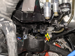 - 在液压控制单元 (HCU) 线束连接器上贴上胶带,以防止制动液泄漏到连接器中。