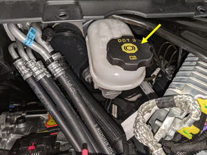 - 清洁制动液储液罐周围的区域,然后拆下制动液储液罐盖。