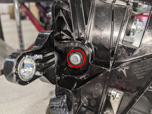 注早期生产型号的螺栓位置可能有所不同。 - 将车间毛巾放在制动管路下面,以收集任何损失的油液。