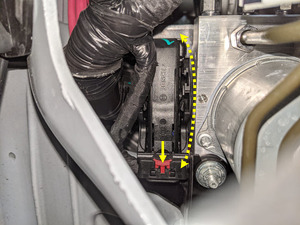 - 撕下液压控制单元 (HCU) 线束连接器上的胶带。
