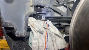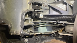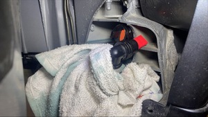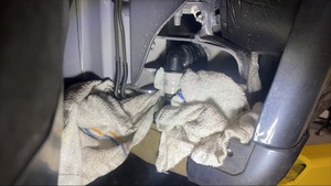 - 取走高压电池前部至左前门槛软管下方的吸收性材料。