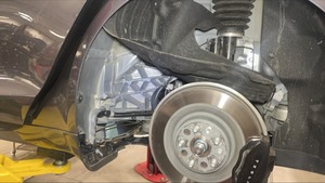 - 拆卸左前和左后车轮。请参阅 轮毂总成(拆卸和安装)。