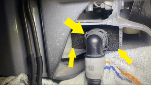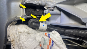- 取走动力总成回流软管后部下方的吸收性材料。