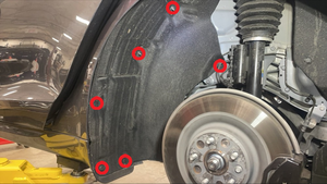 - 拆卸将左前车轮内衬前部固定到车辆的卡子(6 个),然后将内衬置于一旁。