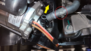 注用钳子将卡夹滑离压缩机入口上方进气管路,然后从压缩机上拆下管路。