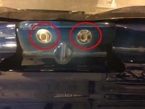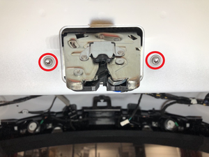 注2 个螺栓,T20,1 Nm,拆下后可丢弃,注意勿影响后视摄像头线路