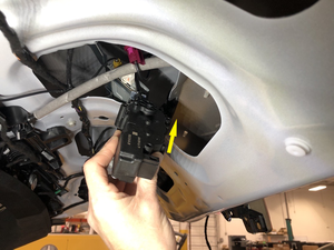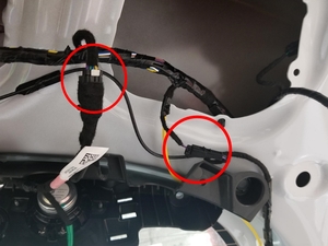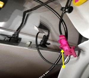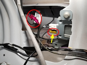 - 从 RH 掀背车门线束安装尾部后视摄像头连接器