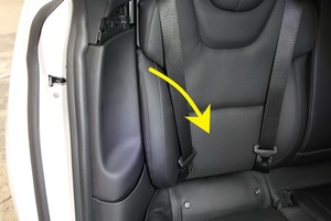 注按动靠背按钮或后备箱开关松开座椅,如果没有座椅垫,请按要求保护座椅。