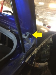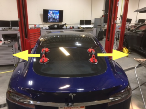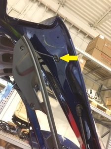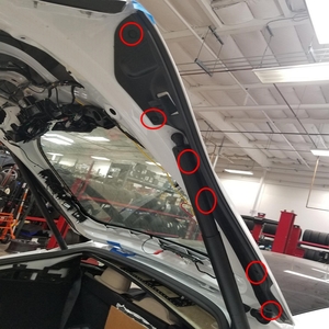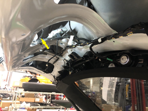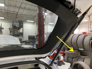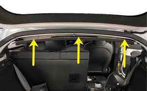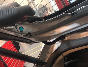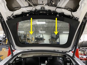 注方形线缠绕在了中央高位制动灯上,可使用平衡器分离 Chimsel 及后挡风玻璃总成。本步骤推荐使用辅助工具