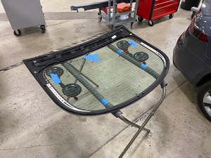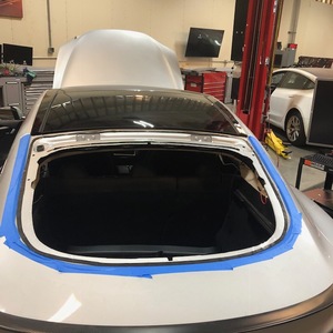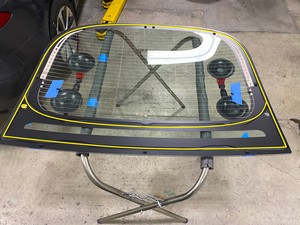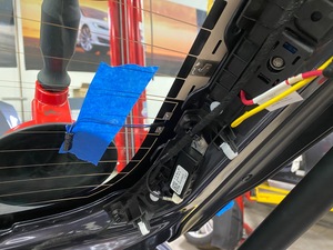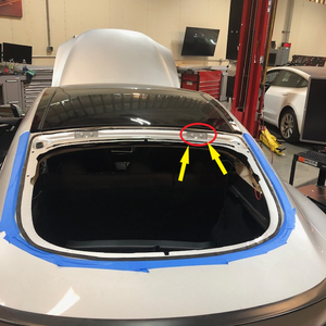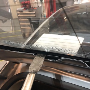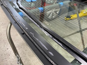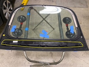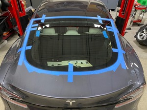 - 沿后挡风玻璃总成四周在车身上粘贴胶带进行保护
