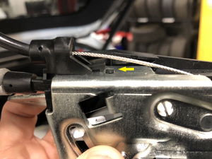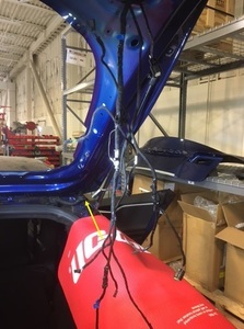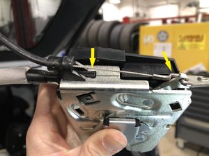将掀背尾门强力闭锁执行机构电缆连接至掀背尾门闩锁电动释放上,并固定至掀背尾门
