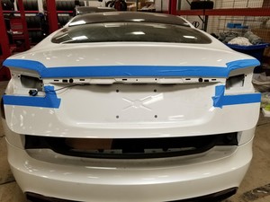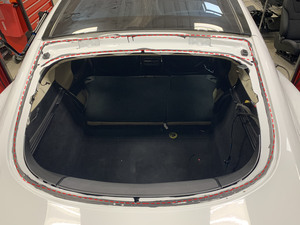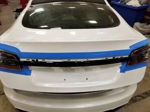 使用底漆修补后,将聚氨酯涂至掀背尾门上