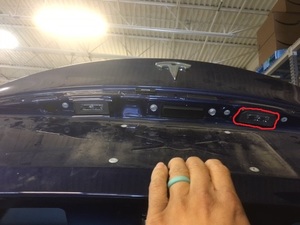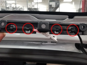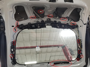 从掀背尾门 BIW 上拆下后视摄像头索环