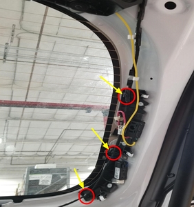 断开掀背尾门右侧后部除霜线束上的噪声滤波天线