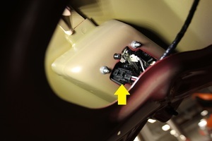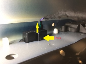 将连接器固定到掀背尾门关闭开关和无线电调谐器右侧