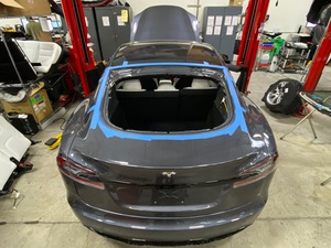注根据需要调整铰链,完成后打开行李箱。请参阅 service.tesla.com 上的检查标准