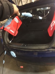 将电缆连接至掀背尾门强力闭锁执行机构,并将执行机构安装至掀背尾门