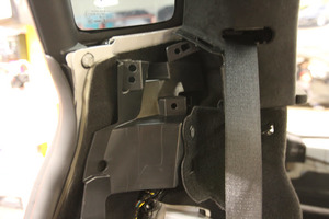 将左侧 C 柱下部饰板固定至左侧 C 柱中部饰板