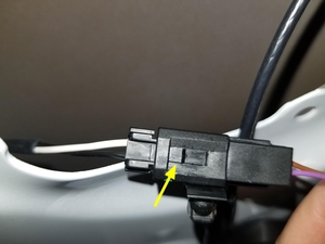 从右侧掀背尾门线束中拆下尾部后视摄像头连接器