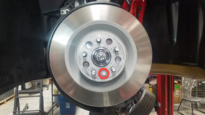如果已安装,则拆下并弃用将前制动盘固定到转向节总成的螺栓。