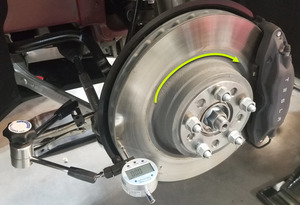 从前制动盘端部向内测量 25 毫米并对齐数字指示器。按下指示杆和零位测量。