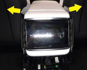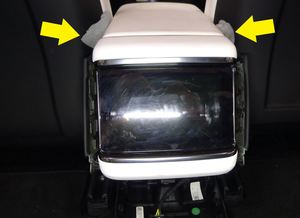 - 松开将中控台左侧面板后部固定到中控台总成上的卡子(4 个),然后在面板和中控台总成之间塞入车间毛巾,使面板与总成分离。对中控台右侧面板重复此步骤。