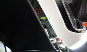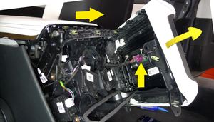 - 从中控台左侧和右侧面板上取走车间毛巾,然后紧固将左侧和右侧面板固定到中控台的卡子(8 个)。