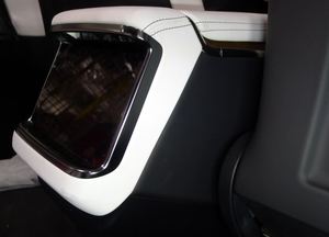 将中控台气波盖放置到中控台上,连接电气连接器,将气波盖与中控台对齐,然后安装将气波盖固定到中控台的螺钉(4 个)。