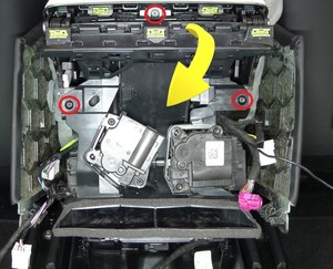 拆卸将中控台气波盖固定到中控台的螺钉(4 个),向右后方拉动气波盖以便接触电气连接器,然后断开电气连接器。