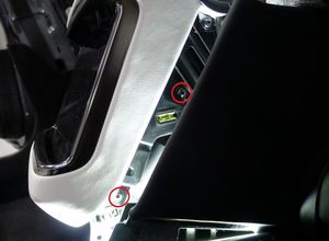 - 拆卸中控台后下方面板。 请参阅面板 - 下后部 - 中控台(拆卸和更换)。