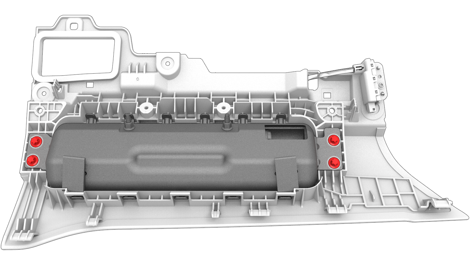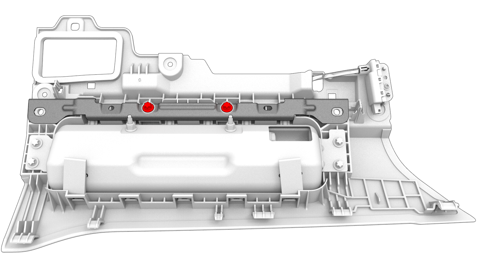 支撑副驾位膝部气囊总成,同时连接电气连接器(2 个)。
