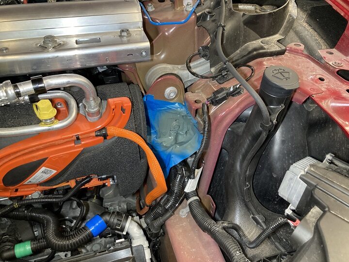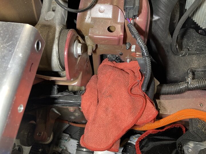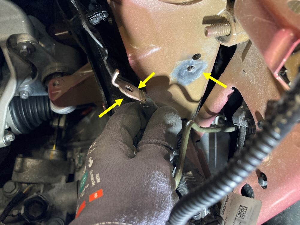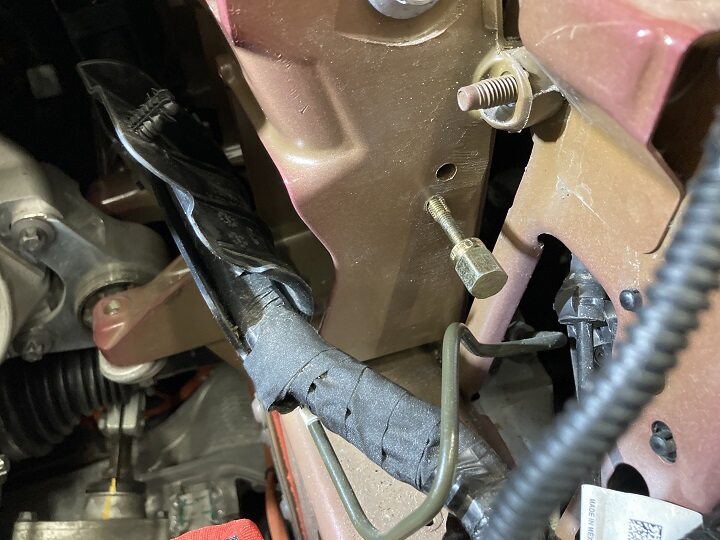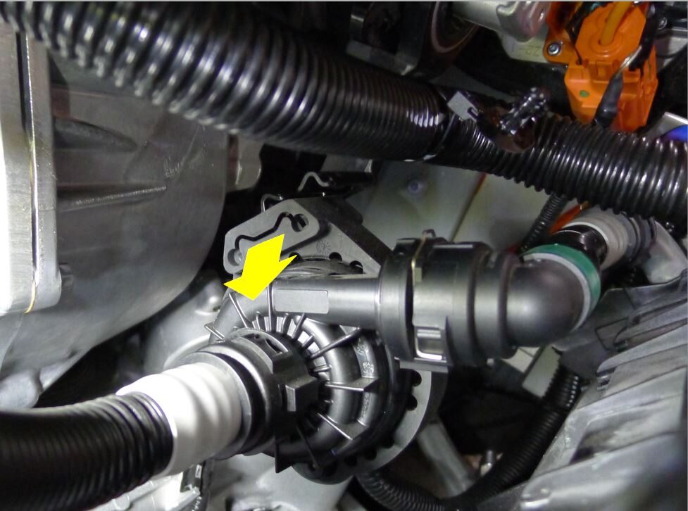 - Remove the bolt that attaches the A/C compressor HV harness bracket toe the A/C compressor.