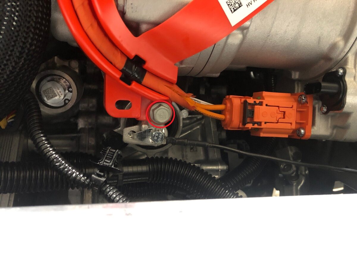 - Install the bolt that attaches the A/C compressor HV harness bracket to the A/C compressor (torque 9 Nm).