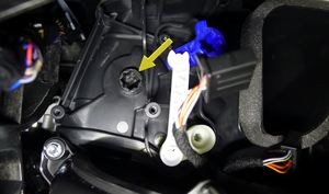 拆下将除霜执行机构固定到暖通空调总成上的螺钉(2 个),然后将执行机构从总成上拆下。
