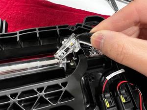 - 将左侧后车门外把手 LED 线束放到把手总成上,然后安装将线束固定至把手总成的卡子。