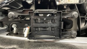 将前雷达传感器放置到支架上,然后紧固将传感器固定到支架上的锁片(2 个)。