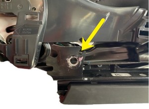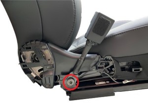 将驾驶位座椅搭扣放置在车辆上,然后安装一个新螺栓,将搭扣固定到座椅滑轨上。
