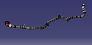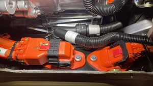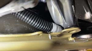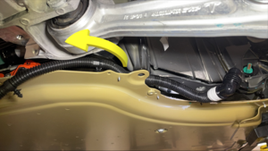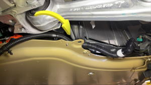 注小心将软管移动到高压电池和车身之间,在安装过程中注意软管的方向