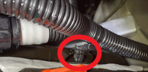 注拆下软管上的所有冷却液塞子,小心地将软管从高压电池和车身间取出,在拆卸过程中注意软管的方向