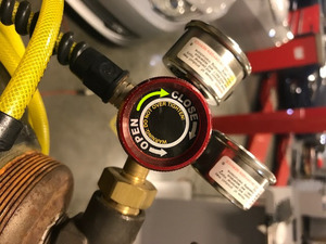 - 当气流声变得安静并且调节器似乎已经保持稳定时,关闭氮罐上的阀门,并监测调节器上的压力。