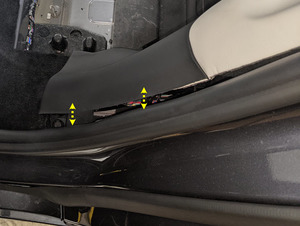 - 部分松开固定 RH C 柱下部饰板的夹子 (x4),以便操作 RH B 柱下部夹子。